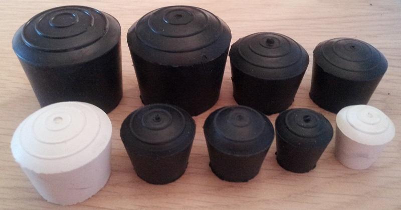 Embouts en caoucthouc, base renforcée, de couleur standard noire, couleur blanche possible.